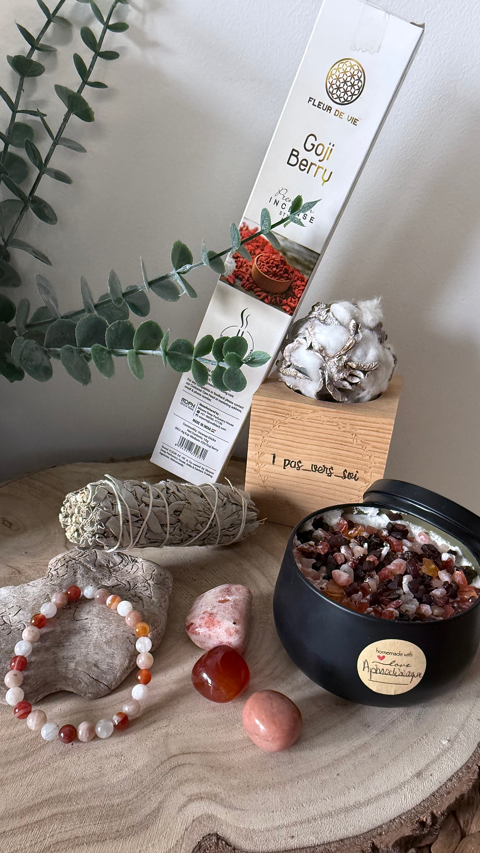 De véritables coffrets d’intentions, conçus pour répondre à vos besoins profonds. Chaque box réunit des trésors énergétiques et spirituels pour accompagner vos rituels intérieurs — qu’il s’agisse de retrouver le calme, d’élever vos vibrations ou de renforcer votre protection.